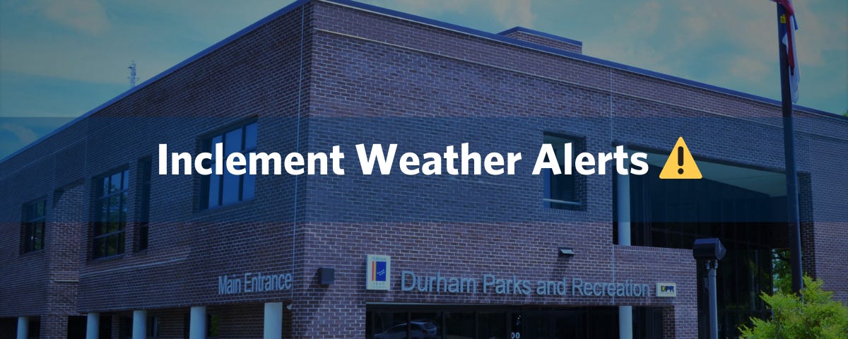 Durham Parks and Recreation is closely monitoring the incoming winter weather expected this weekend. To prioritize the safety of our community, participants, and staff, several service and facility changes will be in effect beginning Saturday afternoon. Please review the details below and plan accordingly.